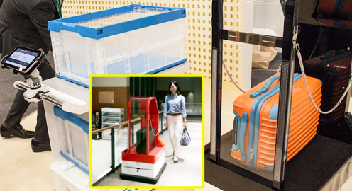 【運搬をロボットで自動化】シャープがハウステンボス「変なホテル」で稼働中のポーターロボや倉庫向け自動搬送装置(AGV)を展示