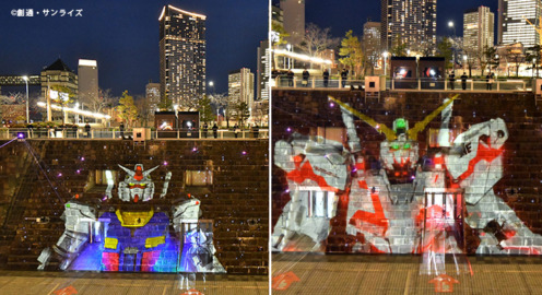 実物大ユニコーンガンダム立像 冬季限定のライトアップを開始 特別デザインされたフォトスポットも設置