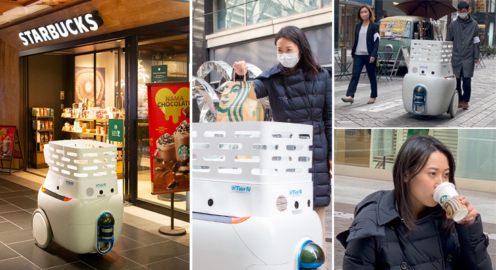 テラス席からスタバに注文、自律搬送ロボットが配達 約100人が丸の内で体験 三菱地所やアイサンが「デジタルツイン」で実現