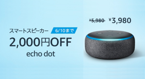 ニュース 【5/31まで】AmazonでEchoファミリー値引き中。Echoが38%OFFの6,980円、Echo DotやEcho Spotも2台まとめ買いでお得に! 2019.05.22 By 中橋 義博