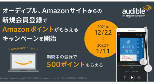 オーディブル、Amazon公式サイトから新規で会員登録するとAmazonポイントがもらえるキャンペーンを実施中
