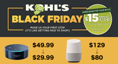 KOHL’Sがブラックフライデーでスマートスピーカーを大安売り!Echo Dotが30ドル、Google Homeは80ドル