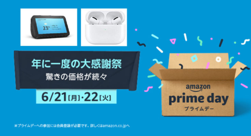 ニュース 年に一度のプライム会員大感謝祭 「プライムデー」の対象商品が明らかに!「Echo Dot」は1,480円、「AirPods Pro」や「宮崎駿作品集DVD」なども 2021.06.15 By ロボスタ編集部