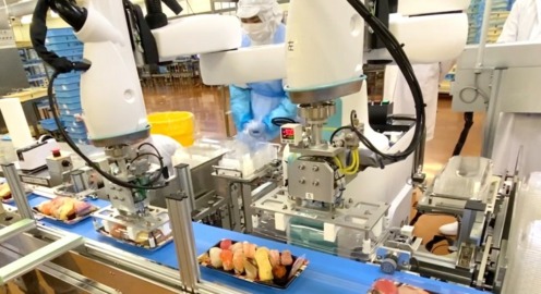 容器の蓋を閉めるロボットを開発、京樽の製造工場に導入 コネクテッドロボティクス 1台で複数品種の寿司容器に対応