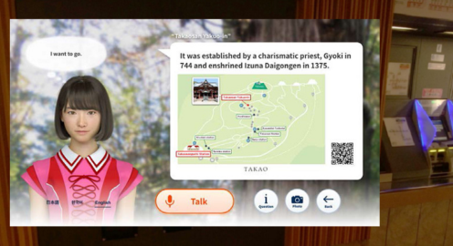 NTTドコモ「おしゃべり案内板」 京王線高尾山口駅でSayaが多言語で案内!AIエージェントの実証実験を開始
