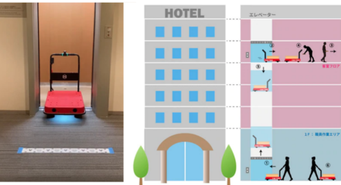 【新型コロナ対策】宿泊感染者の食事やアメニティ類を無人運搬車が客室フロアに運ぶ ZMPが「CarriRo AD」を活用
