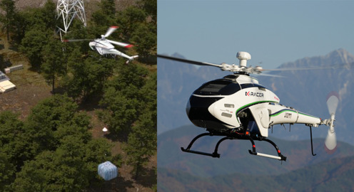 川崎重工の無人ヘリコプター「K-RACER」で送電鉄塔向けの資材を自動運転で空輸 かんでんと朝日航洋の3社で合意