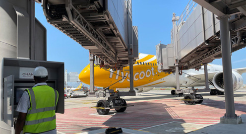 新明和工業、航空旅客機への搭乗橋を遠隔操作で自律型完全自動運転を実現、実用化に成功 シンガポールの空港で