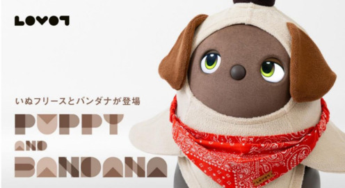 「LOVOTウェア」新作『いぬフリース(パピー)』と『ロゴプレート付きバンダナ(ペイズリー柄)』販売へ