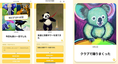 ニュース 「ChatGPT」と「Stable Diffusion」で動物が日記を生成 生成AIを使った新感覚エンタメ絵日記「AIどうぶつ日記」LINEで提供開始 2023.08.14 By ロボスタ編集部