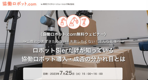 無料ウェビナー「ロボットSIerだけが知っている 協働ロボット導入・成否の分かれ目とは」7月25日に開催 協働ロボット.com
