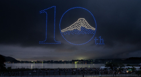 富士山で400台のドローンショーを披露 夜空に歓声が響く 富⼠⼭世界⽂化遺産登録10周年と富⼠河⼝湖町制20周年記念