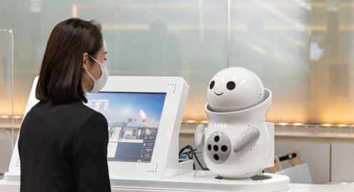 コクヨが東京ショールームに人型AI案内ロボットを試験導入 展示エリア内を先導し、商品体験方法の案内など担当
