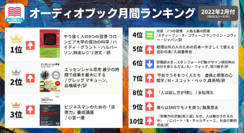 音声配信サービス「audiobook.jp」で人気の作品は?2022年2月人気ランキング『やり抜く人の9つの習慣』が第一位を獲得