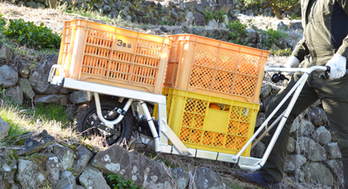 ねこ車電動化キット「E-Cat Kit」愛媛県のみかん農家に本格展開めざし実証実験へ 無償貸与先を募集 運搬作業効率の改善