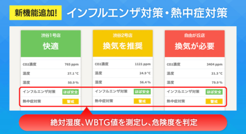 CO2濃度、温湿度を測定できる「まもセンサー Air」新機能は「インフルエンザ対策・熱中症対策」危険度を3段階で判定