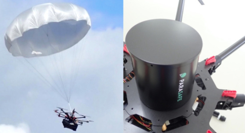 産業用ドローンの緊急落下にパラシュートで対応 エアバッグ技術を応用した「PARASAFE」実証実験