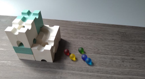 ビー玉の転がるみちをつくって遊ぶ立体パズル「Quomué」楽しみながら非認知能力の発達を促す