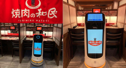「焼肉の和民」が大型サイネージ付き配膳ロボット「Kettybot」の実証実験 配膳と下げ膳、案内にも使用