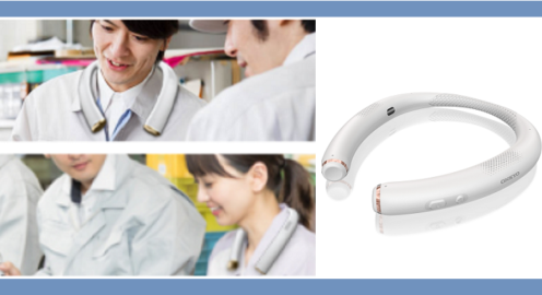 オンキヨー、ネックスピーカー型デバイスの対話音声取得システムを開発 作業中の装着者と相手の音声を取得