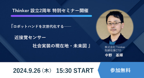 近接覚センサーとロボットハンドのThinker 設立2周年特別セミナー9/26開催へ 事例紹介や社会実装の現在と未来をCTOが語る