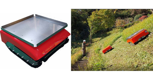 電動ラジコン草刈りロボット「ユニモワーズ」の実証実験を九大附属農場で実施