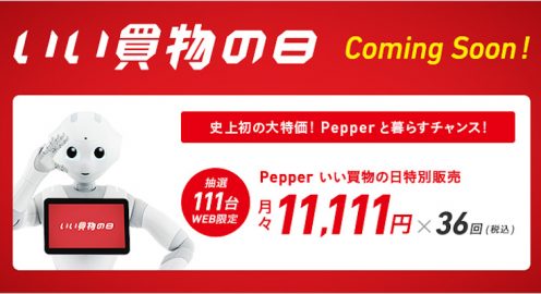 【いい買物の日特別販売】Pepperが月額11,111円で買える!【限定111台】