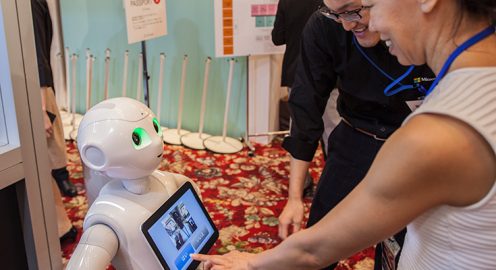 レポート 【SoftBank World 2016 徹底レポート(15)】早くもAndroid Pepperがデモ展示に登場!! みんな知ってるあの通話アプリをPepperで稼働展示 2016.07.23 By ロボスタ編集部