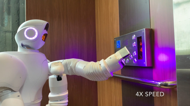 アイオロスロボットは、人工知能(AI)を搭載した自律型ヒューマン支援ロボット。主に介護業界で活躍し、介護士の手伝いや、見守り、施設の入居者が転倒など緊急事態を検知しスタッフへ発信する緊急対応などで活用することを想定している。機体が伸び縮みして身長が高くなる構造を採用し、最大身長は132cm。RNNやRL、GANなどのAI技術やLiDAR、超音波センサーなど搭載し、物を運んだり、エレベーターに乗って階を移動したり、掃除機を使って掃除したりすることができる。物体の認識は、既に機械学習によって壁や階段などの構造物、テーブルや椅子などを含めて、基本的なものは学習済みで、ある程度の日用品なども理解する。ユーザーが学習させたい時は、スマートフォンアプリから物体の様々な角度から撮影し、名称を付けることで完了する。またその際、つかむときにはどこを持つべきかなどの情報も学習させることができる。(日本代理店は丸文株式会社が担当)