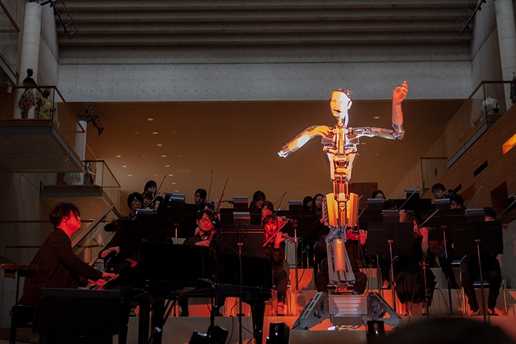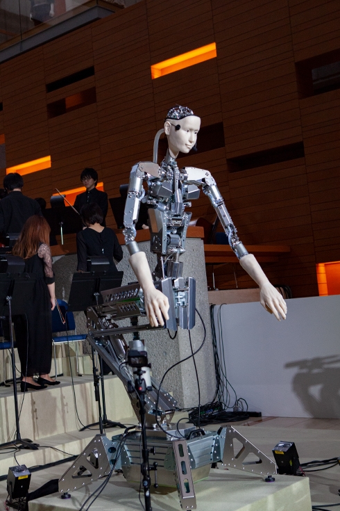 日本 「オルタ3」4 社共同研究プロジェクト アンドロイド 展示会オルタは「生命を持つように感じさせるものは何か?」という問いを追求するため、2016年7月に日本科学未来館で展示されたのがはじまり。翌2017年7月には、指揮者となった「オルタ2」が日本科学未来館で800人の観客の前でオペラを指揮する「Scary Beauty」(スケアリー・ビューティー)が日本科学未来館で公開された。オルタ3はその三代目で、2019年2月28日についに新国立劇場の大階段でオーケストラの指揮を行った。