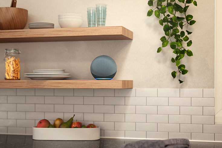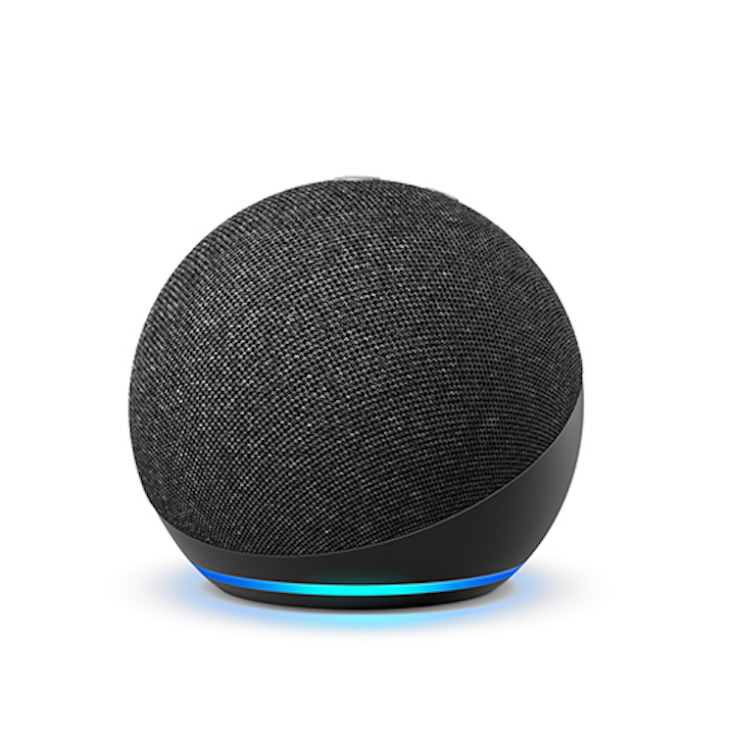 Amazon EchoはAlexa対応のスマートスピーカー。「Alxa、今日の天気は?」などと話しかけるだけで、タイマーのセット、各種リストへの項目追加、カレンダーへの予定の追加、リマインダーの設定ができる他、スキルストアからスキルと呼ばれるアプリケーションをダウンロードすることでニュースや天気、鉄道の運行状況を確認したり、クイズやしりとり、子どもと一緒に楽しんだりと活用の幅を広げることができる。従来は筒型だったが、第4世代の「Echo」は新しく球体デザインになった。3.0インチのウーファーと2つのツイーターを搭載。Echo Studioと同様に、自動的にデバイスが設置された空間の音響特性を感知し、最適な音質でのオーディオ再生を微調整できる。Zigbee対応スマートホームハブを内蔵し、「アレクサ、デバイスを探して」と言うだけで、互換性のある照明などが簡単に接続できる他、Bluetoothやwifiで接続するさまざまなスマートデバイスを声で操作可能。さらに、2020年10月現在は米国のみ対応だが、Amazonが開発した機械学習の高速化に対応する新しいシリコン・モジュール「第1世代AZ1ニューラル・エッジ・プロセッサ」により、Alexaが従来より早く応答するようになった。