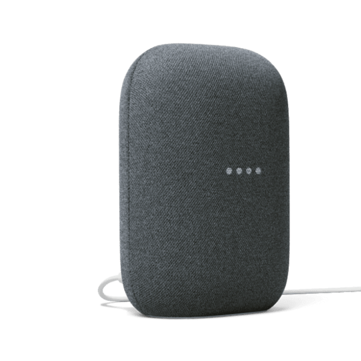 Google Nest Audioは2020年10月15日に販売開始したスマートスピーカー。サイズは高さ175mm、幅124mm、奥行78mm、重量は1.2kg。高周波カバレッジとクリアなボーカルを再生する19mmツイーター、低音を再現する75mmミッドウーファーを搭載し、Google Homeより75%音量が大きく、低音が50%強くなっている。サウンドは500時間以上のチューニングにより、低、中、高音域のバランスをとることで、豊かでクリアな音質を実現。Media EQ 機能により、音楽やオーディオブック、Google アシスタントからの応答の再生など、コンテンツに応じて自動的にイコライザーを調整するため、いつでも最適なサウンドを楽しむことができる。また、Ambient IQにより、室内の環境音に基づいて音量を調整するため、例えば食洗機が動いていても天気予報を聴き取ることができる。