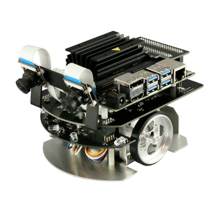 「Jetson Nano Mouse」は画像処理、機械学習などのAI関連技術とロボット制御技術を同時に学ぶことができる小型二輪移動ロボット。AGV・自動運転技術の研究開発や在宅での勉強などの需要の高まりに応えるためアールティが開発し、2020年9月14日に発売した。同製品はJetson Nanoをメインボードに組み込むことで、高性能なGPUによる処理能力を活かしたカメラ映像のリアルタイム処理など、エッジコンピューティング用デバイスの研究開発に活用できる。広角カメラ2台を車体前方に搭載しているため、両眼視差を用いた立体視も可能。細かな速度制御が可能なステッピングモータも搭載している。NVIDIA製のAIコンピュータボード「Jetson Nano」の購入が別途必要になる(「Jetson Nano Mouse」製品には付属しない)。