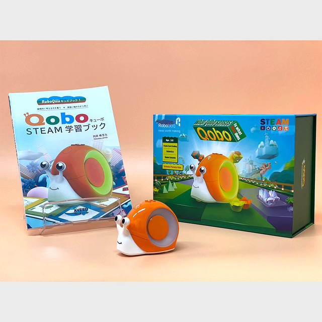 Qoboは可愛いロボット「キューボ」と一緒に世界中を旅しながら論理的思考を養う、幼児から小学生低学年向けのSTEAM教材。記号やイラストの記されたプログラミングカードを使ってキューボを目的地まで導くなかで、子ども達がワクワクしながら、自分自身で解決方法を探ることができるよう設計されている。基本セットにはキューボの基本操作方法や学習方法に加え、拡張パックの算数カードを用いた学習方法をとりまとめたオリジナル「Qobo STEAM学習ブック」を同梱、スムーズに使い始めることができる。 画面ではなく、直接手で触れる「タンジブル」と呼ばれるプログラミング方法が採用され、小さな子どもでも親しみやすく、創造力と問題解決能力、科学的思考力を発達させるための学習の入り口として、STEAMの世界に初めて触れるのに最適という。