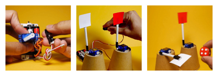「ココロキット+」は電池を入れるだけで、角度を変えるモータを手軽に動かせるキット。数多くのロボットやIoTプロダクトを企画・開発するユカイ工学が2020年11月に発売した。 「押す・引く」「開く・閉じる」「上げる・下げる」「右向く・左向く」「打つ・投げる」などの動きを使った工作が簡単にできる。例えば、上下に動くキャラクターを作ったり、色を認識させるプログラミングを使った旗揚げ遊びなど、自分でつくった作品をビジュアルプログラミングやテキストプログラミングと連動させて動かすことができる。 なお、他にユカイ工学が開発した「ユカイな生きものロボットキット」「ユカイなぼうけんクラフトキット」があるが、「ココロキット+」ではそれらのモータを動かすことはできない。