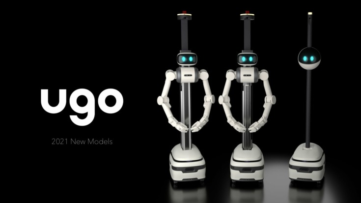 ugoはugo株式会社(旧Mira Robotics)が開発した、2本のアームと移動機構を持った、遠隔で様々な業務を行うことができるアバターロボット。身長を調整することにより、高いところや低いところの作業に対応できる。 AIによる学習機能を活用することで自動で業務を行うこともできるなど、従来の単純なアバターロボットと完全自動化ロボット双方の利点を併せ持つ。2020年11月に従来のugoを「ugo Pro」(高機能ハイエンドモデル)に名称を変更し、「ugo R」(標準モデル)と「ugo Stand」(エントリーモデル)を発表。2021年にはugoと大成が警備ソリューション「ugo TSシリーズ」として商用化を開始したほか、シンプルで拡張性が高くリーズナブルなモデル「ugo Ex」をラインナップに追加した。ugoと大成は2019年から品川シーズンテラスで実証実験を行い、エレベータ操作の自動化を実現、フロアを超えての移動が可能になった。オフィスフロアの自動巡回、立哨・巡回での複数台運用/エレベータ移動など、実証実験を繰り返しながらアップデートを行い、2021年9月より量産化して本格サービスを開始している。また、2022年には警備ソリューション「ugo TSシリーズ」と三菱電機株式会社のロボット移動支援サービス「Ville-feuille(ヴィルフィーユ)」が連携。ugoとビル設備が通信で連携し高度なロボット移動が可能となった。「ugo Pro」「ugo R」は昇降機能とアームを搭載し、アームを使った作業やフロア間の移動が可能。「ugo Stand」と「ugo Ex」はフロア間の移動が必要のない場所にリーズナブルな価格で導入できる。