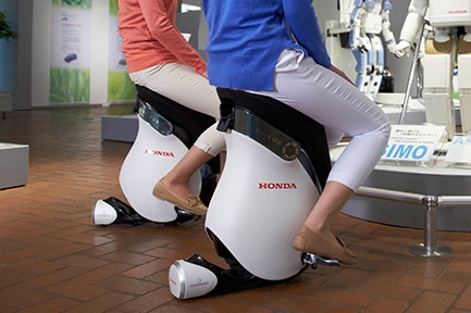 進みたい方向に体を傾けるだけで進むことができるパーソナルモビリティ。左右前後だけでなく、斜めにも進むことができる。この技術は、Honda独自のバランス制御技術と全方位駆動車輪機構により実現している。展示会やショッピングモールで長時間滞在する場合や、徒歩で長距離移動する場合の使用を目的としている。2012年に初代UNI-CUBが登場し、その後様々な実証実験を得て「UNI-CUB β」へと改良された。(写真はUNI-CUB β)