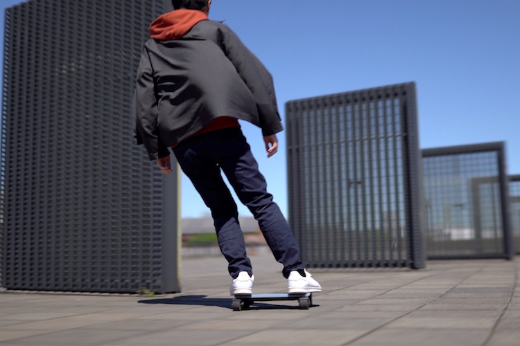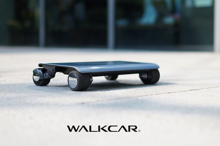 WALKCARはノートパソコン感覚で持ち歩ける小型のスケートボード風モビリティ。本体フレームに超軽量・しなやかな走りを実現する「カーボン素材」、後輪フレームに軽くて強い「超々ジェラルミン合金」を採用し、重量はわずか2.9kg。サイズは13インチのノートPCと同様のサイズ(H74mm×W346mm×D215mm)。 「加速・減速・曲がる」の動作は重心移動を基本とした操作によって行い、WALKCARから降りると足元で自動停止する。なお、日本国内では公道は走行できない。 ホイールモータにはWALKCAR専用を新規開発。超小型サイズで自転車並みの時速16km、10度の登り坂をパワフルに登るトルク性能を実現している。2016年の製品発表以来、国内・海外の多くのメディアから反響を呼び、先行予約は世界13カ国から累計約7800台に達している。対象ユーザーは14歳~59歳、体重30~80kg(荷物等を含めた重量)、靴サイズ20cm以上で、正しいライディング姿勢を保てる心身共に健康な人が利用の対象。