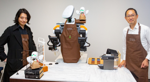 【速報】遠隔操作とロボで「テレバリスタ」の夢を実現 分身ロボット「OriHime」と協働ロボット「NEXTAGE」の合体連携 デモ公開